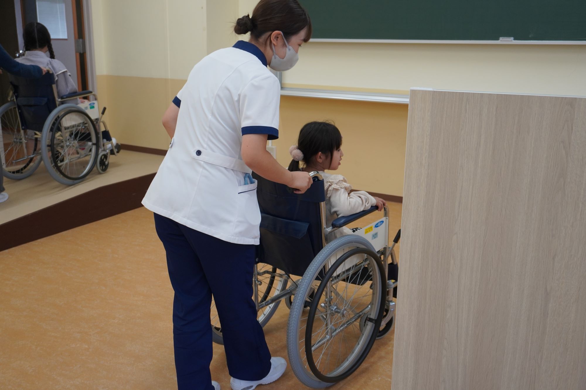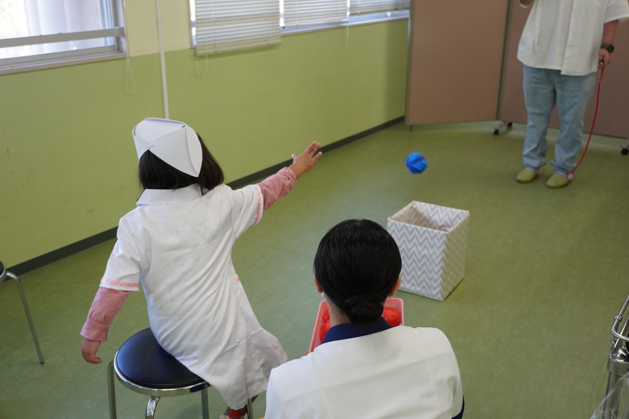また、子供たちは普段は着る機会がない消防服やナース服などを着て、消防体験や看護体験をし、