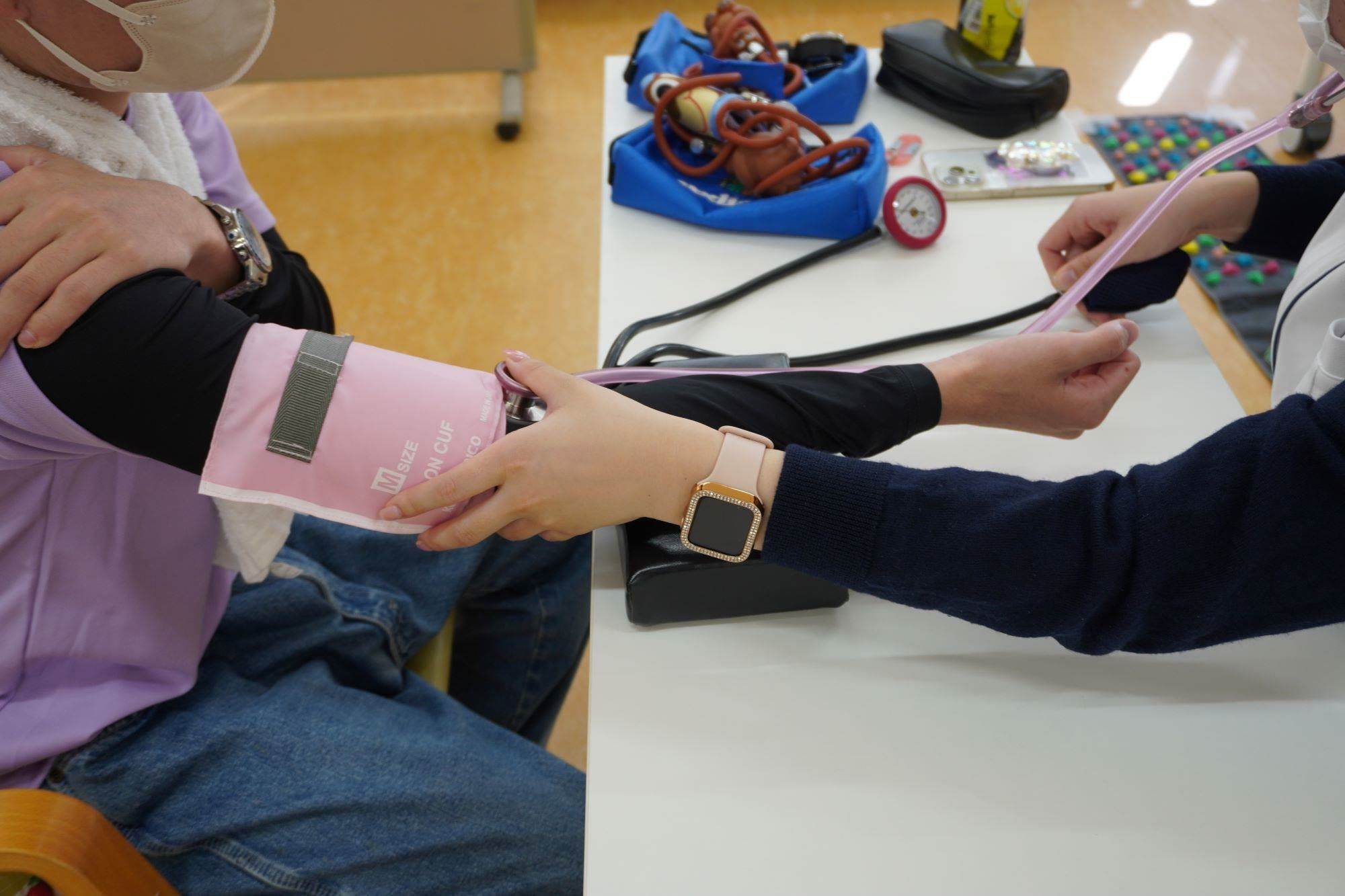 血圧測定や手浴、高齢者体験など、一人でも多くの方に看護身近に感じてもらえるような、