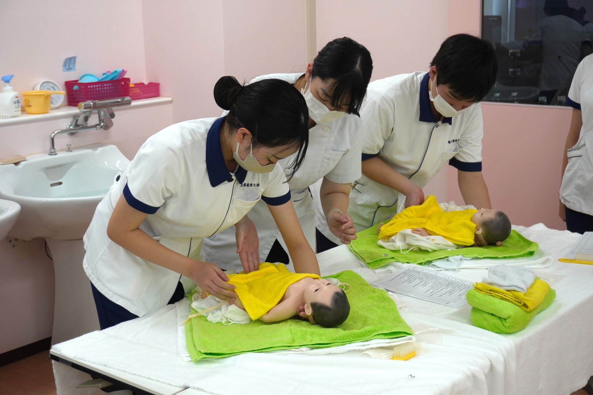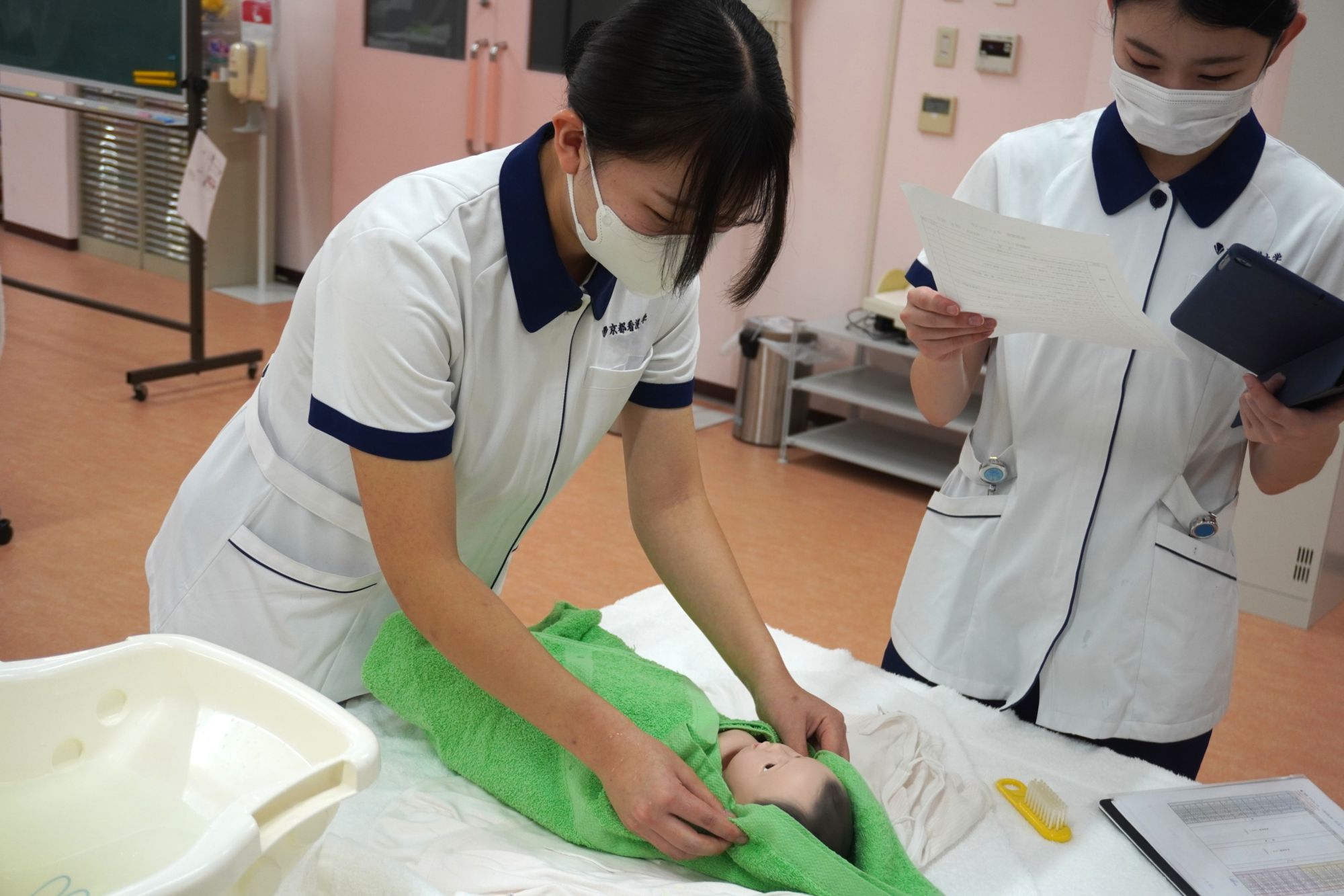 今回は、2回生が取り組む「新生児期の看護技術」の演習の様子をご紹介いたします。