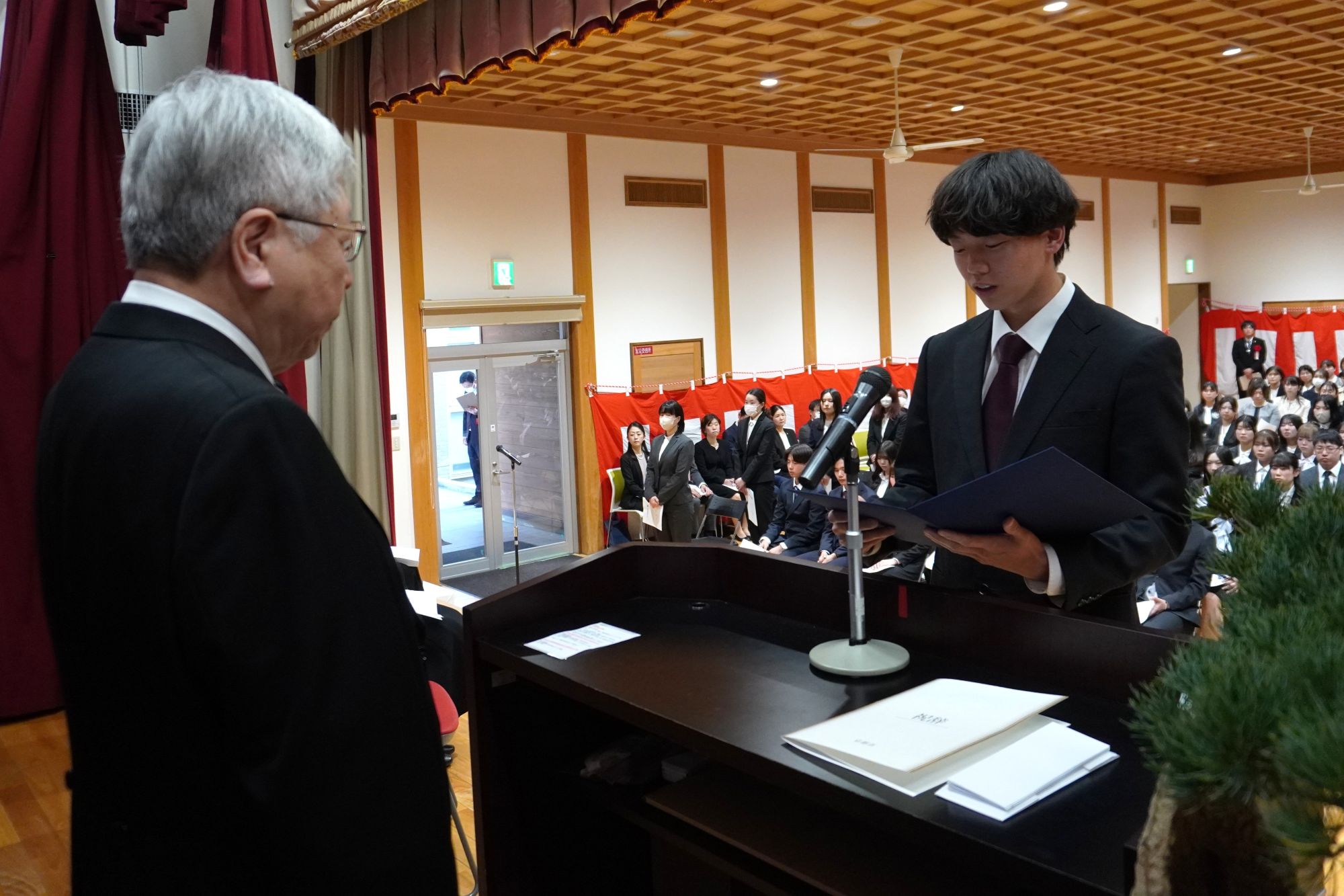 また、新入生宣誓では学部生・大学院生それぞれの代表より、これから始まる学修生活への意欲と決意が力強く表明されました。